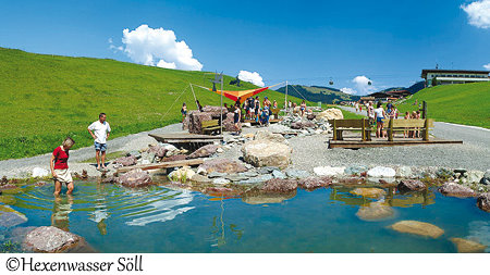Hexenwasser Söll Staunen - Begreifen - Verstehen Die BergErlebnisWelt Hexenwasser in Söll in Tirol begeistert seit zwanzig Jahren Kinder und Erwachsene mit behutsamen Naturschauspielen. Stationen, Wege und Wunderkammern können teils auf eigene Faust, teils unter Anleitung erforscht werden. Auf Österreichs längstem Barfußweg geht es über Gras, Rindenmulch, massierende Steine und plätscherndes Wasser zu zahlreichen Stationen, auf denen alle Sinne neu angesprochen werden. Im ganzen Areal, am Fuße der Hohen Salve, gibt es überall etwas zu entdecken und immer wieder warten kostenlose Hexenprogramme, Aktivitäten und Vorführungen. Um noch einen tieferen Einblick in die alten Sagen, Bräuche und Weisheiten der Damen mit Spitzhut zu erlangen, warten im Hexenwasser exklusive HeXpeditionen. Die Hexen nehmen sich die Zeit für ihre Gäste, die „Zeit mit der Hexe“, und lassen sie an den betreuten Hexenwasser Stationen mit anpacken, werkeln und verkosten.